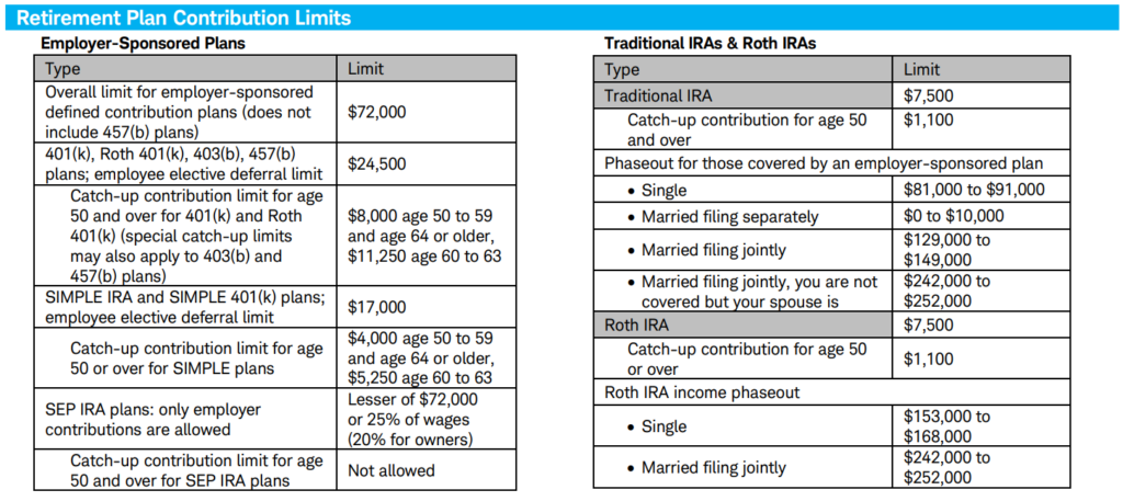 • 401(k) catch-up (50+) increased from $7,500 → $8,000